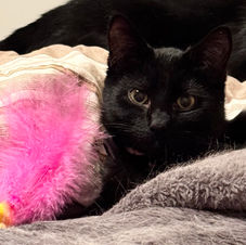 • Enjoys tunnels, toys that she can bat, throw around, & chase. She also loves her quiet cubbies either in a cat tree or on the floor where she can just 'disappear'.